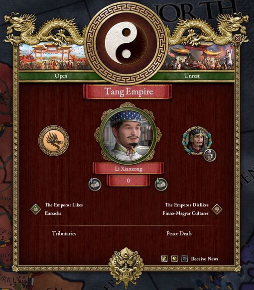 所有和中国的互动都基于游戏中一个新的交换值,称作皇恩。皇恩代表中国欠一位统治者的恩惠,可以通过不同方式获得或失去。统治者拥有的皇恩只和一个中国统治王朝有效。如果一位篡位者或侵略者夺取了龙椅,所有的统治者都会失去他们的皇恩,不得不重新开始建立良好的关系。