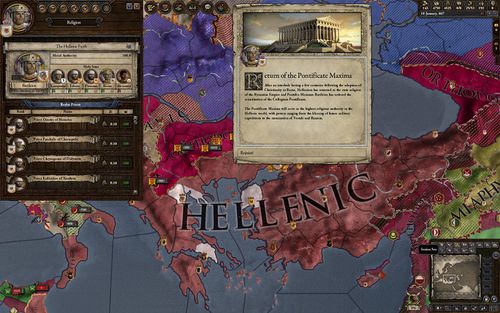 - The Pontificate Maxima: by spreading your faith and becoming a powerful king or emperor, you may declare yourself the Pontifex Maximus and restore the Roman religious hierarchy of old!