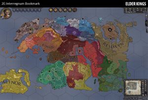Elder Kings is a total conversion for Crusader Kings 2 set within the Elder Scrolls universe. In which a player may take on the role of a variety of different Elder Scrolls races and leaders in order to lead a people or a nation through the turbulent times of the 2nd era, or "interregnum" of the Elder Scrolls universe.