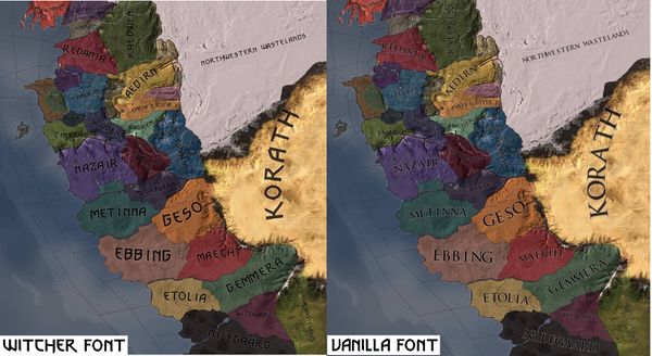 Comparison of vanilla vs thewitcher map fonts